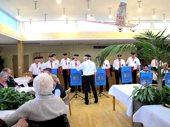 wechselhafte Wetter machte es erforderlich, das wir im Aufenthaltsraum des Seniorenheimes auftraten. |