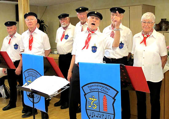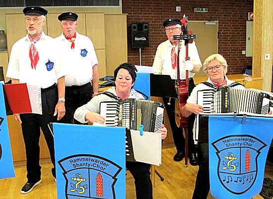 Solist auf. Begleitet von Katja und Edeltraud (von links) am Akkordeon sowie unserem Olli an der Teufelsgeige sang er "Molli Melon" und erhielt viel Beifall. |