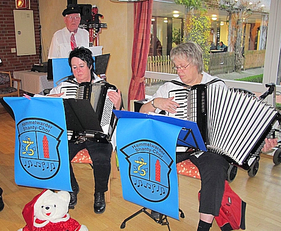 | Bei dem Lied "Rum aus Jamaika" ermunterte Georg ,von Blinkfüer, die Senioren zum Mitmachen... |
