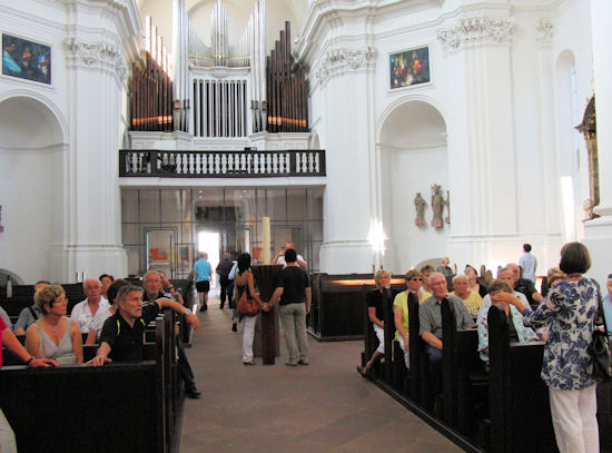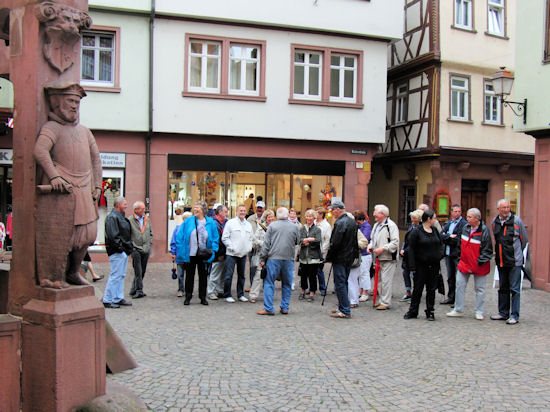 | Sehr anschaulich erklärte unsere Stadtführerin (r.) uns die Besonderheiten der kath. Stiftskirche. |
