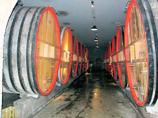 | ...und riesige Holzfässer in denen Rot- und Weißwein gelagert wurde. |