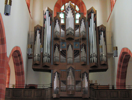| An dem Orgelprospekt kann man ermessen, wie groß diese Kirche ist. |