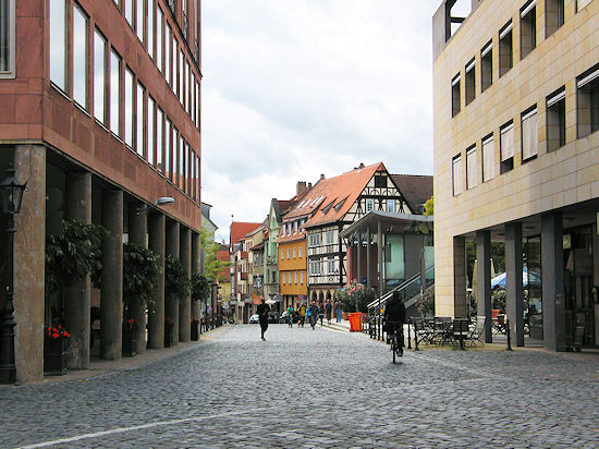 | Auch das ist zu sehen, moderne Bauten und alte Fachwerkhäuser - alles passt gut zusammen. |