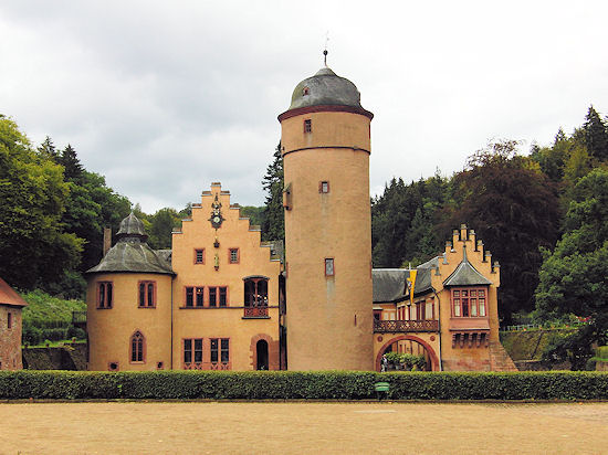 "Schloss Mespelbrunn". Hier wurde der Film "Das Wirtshaus im Spessart" mit Liselotte Pulver gedreht |