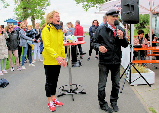 Am Sonnabend, 25. Mai, brachten wir einer Dame aus Hannover ein Ständchen zu ihrem 50. Geburtstag. Die Dame war Mitglied einer Radlergruppe, die sich in Fedderwardersiel aufhielt. |