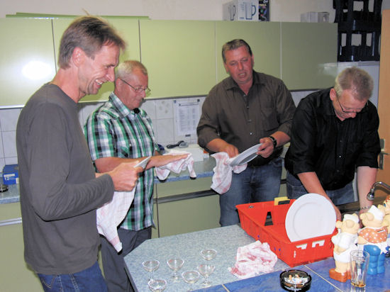 | Nach dem leckeren Essen machten einige treue Helfer aus dem Schützenverein den Abwasch |