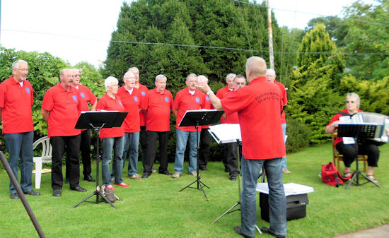 | Mit Uwe (3. v. l.) freute sich der ganz Chor über einen Übungsabend "der besonderen Art". |