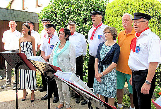 | Vor dem eigendlichen Empfang, sangen wir für den Jubilar und seine Familie. |
