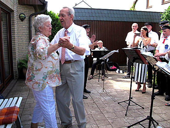 | Der rüstige Jubilar und seine Frau stimmten ebenfalls mit ein. |