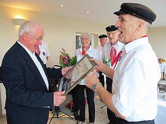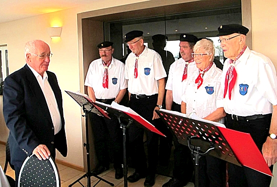 | Natürlich reihte sich der Jubilar bei uns ein und sang einige Lieder mit. |