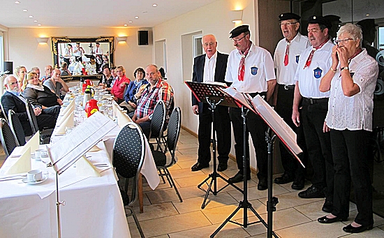 | Heinz (links) begrüßte uns und lud nach dem Singen zum "kleinen" Umtrunk ein. |