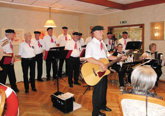 | Unser Dirigent Heinz Goretzki erteilt den Gästen "Hafenunterricht" |