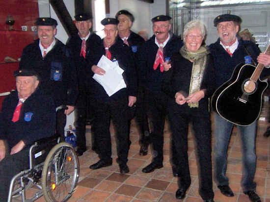 | Fröhliches Warten auf das Brautpaar im Braker Schiffahrtmuseum |
