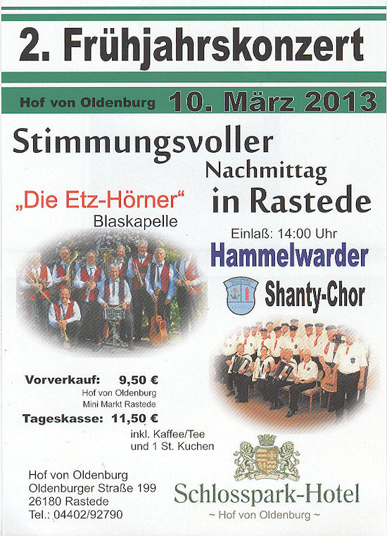 10. März traten wir, gemeinsam mit der Blaskapelle "Die Etzhörner", im "Hof von Oldenburg" in Rastede auf |