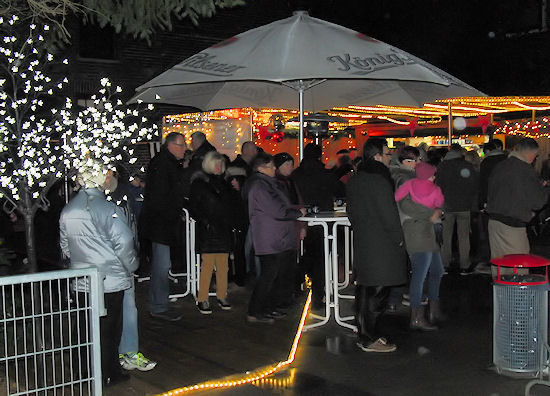 | Gut besucht, trotz nasskaltem Wetter, war Roberts Glühweinbude am Sonntagabend. |