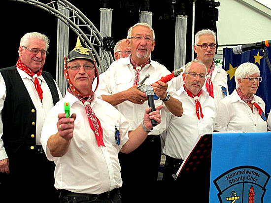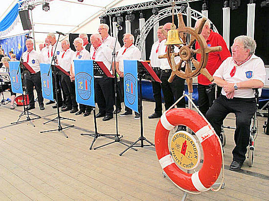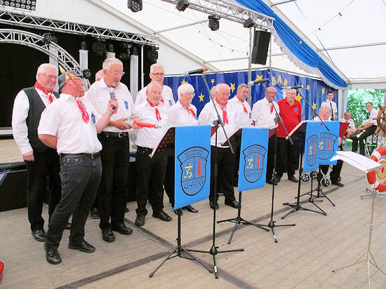 | Jürgen und Horst (vorne von links) sangen "Feuer an Bord"... |