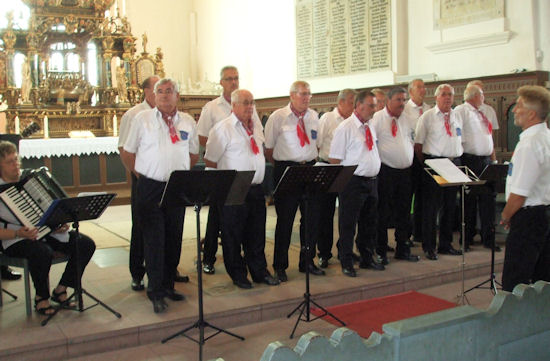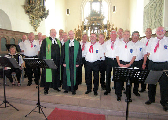 | Die Pastoren Werner Könitz (rechts) und Wilko Hunger freuen sich über den Chor |