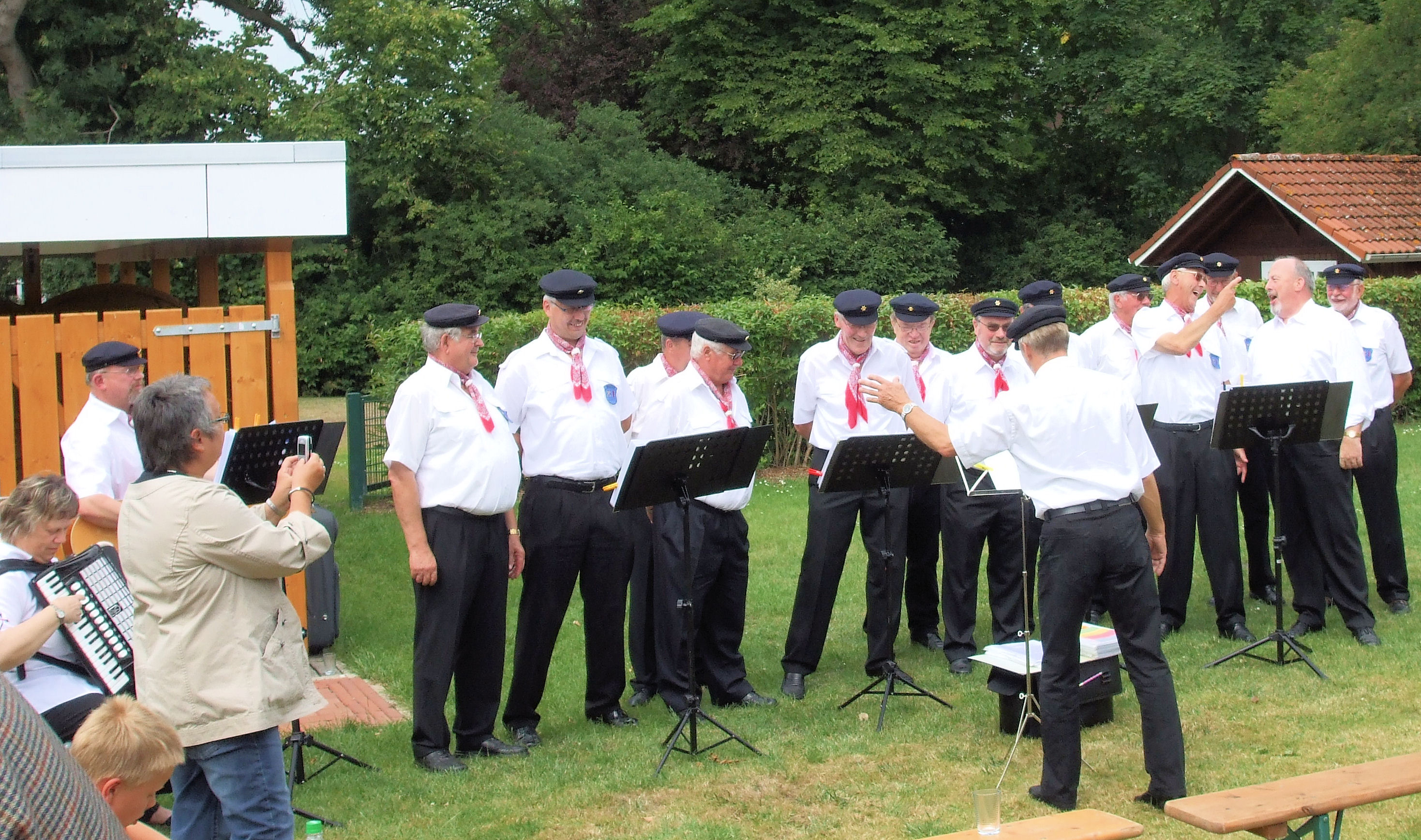Beim Ständchen im Pfarrgarten sang auch Pfarrer Könitz (3. v. rechts) mit. |