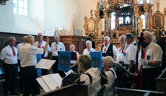 Sonntag, 6. September waren wir zur Seemannsvesper in der St. Matthäus-Kirche in Rodenkirchen. Abwechselnd mit der Liturgie sangen wir immer wieder Seemanslieder. |
