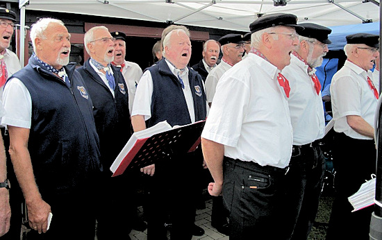 sich beide Chöre von den Zuhörern die sich, trotz nicht so gutem Wetter, eingefunden hatten. Abschließend eine persönliche Bemerkung des Web-Masters: Ich danke den Verantwortlichen beider Chöre, das man endlich über den eigenen Schatten gesprungen ist und erstmals gemeinsam gesungen hat! Ich bin guter Hoffnung, das dieser Auftritt nicht der letzte gemeinsame Auftritt war. Das es den Zuhörern gefallen hat, war am Beifall zu hören - ich hoffe es hat auch den Akteuren Spaß gemacht?!? |