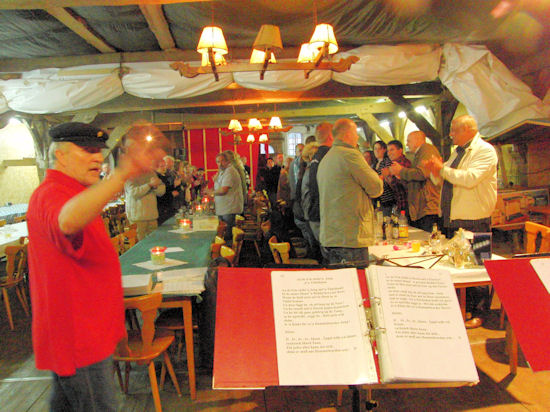 | Heinz, engagiert wie immer, gibt den Einsatz zu einem kleinen, aber gemütlichen Konzert. |