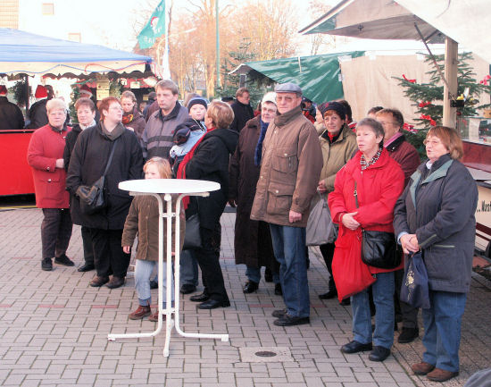 | Gleich zu Beginn hatten sich eine Reihe Zuhörer eingestellt, die die Weihnachtslieder mitsangen |